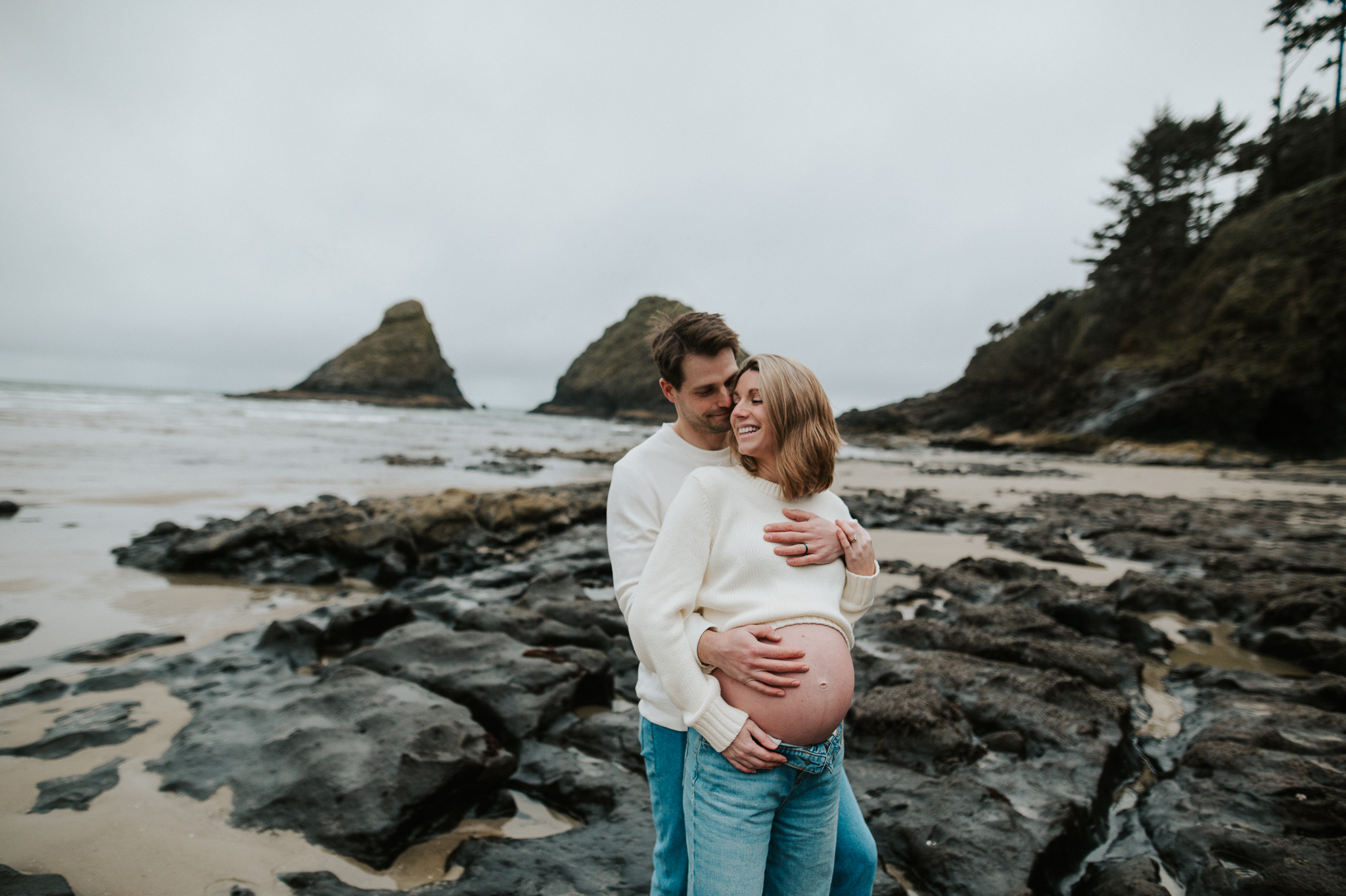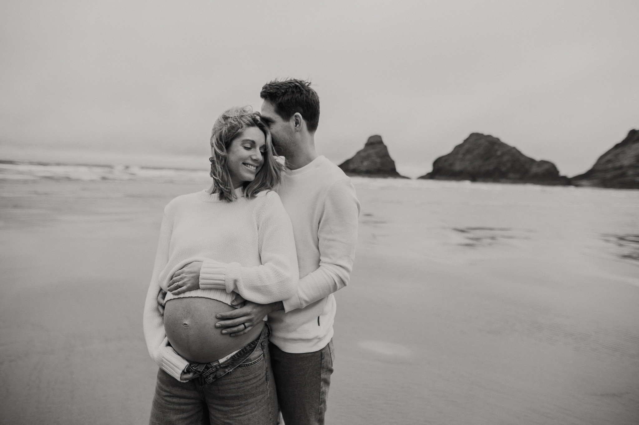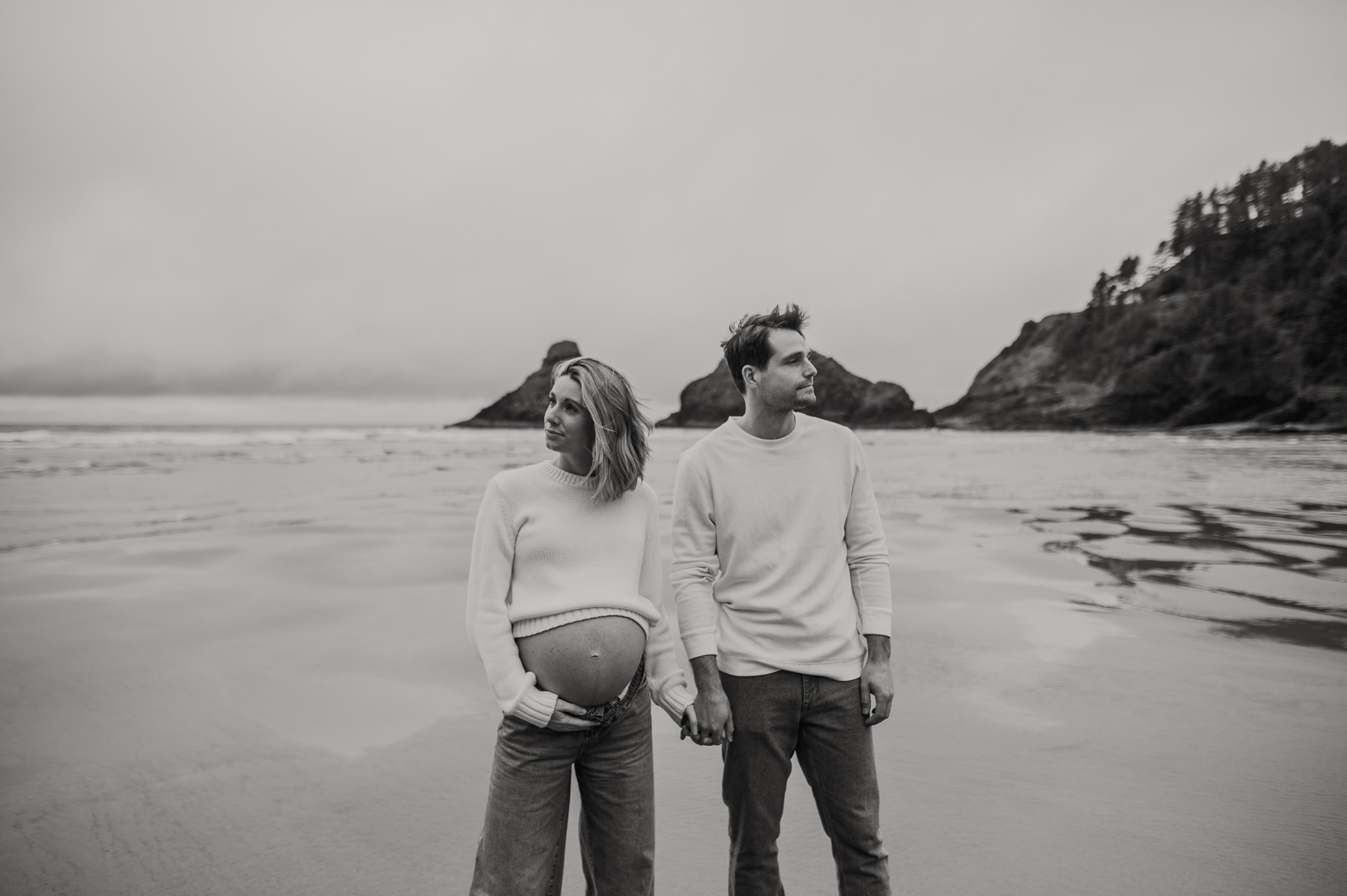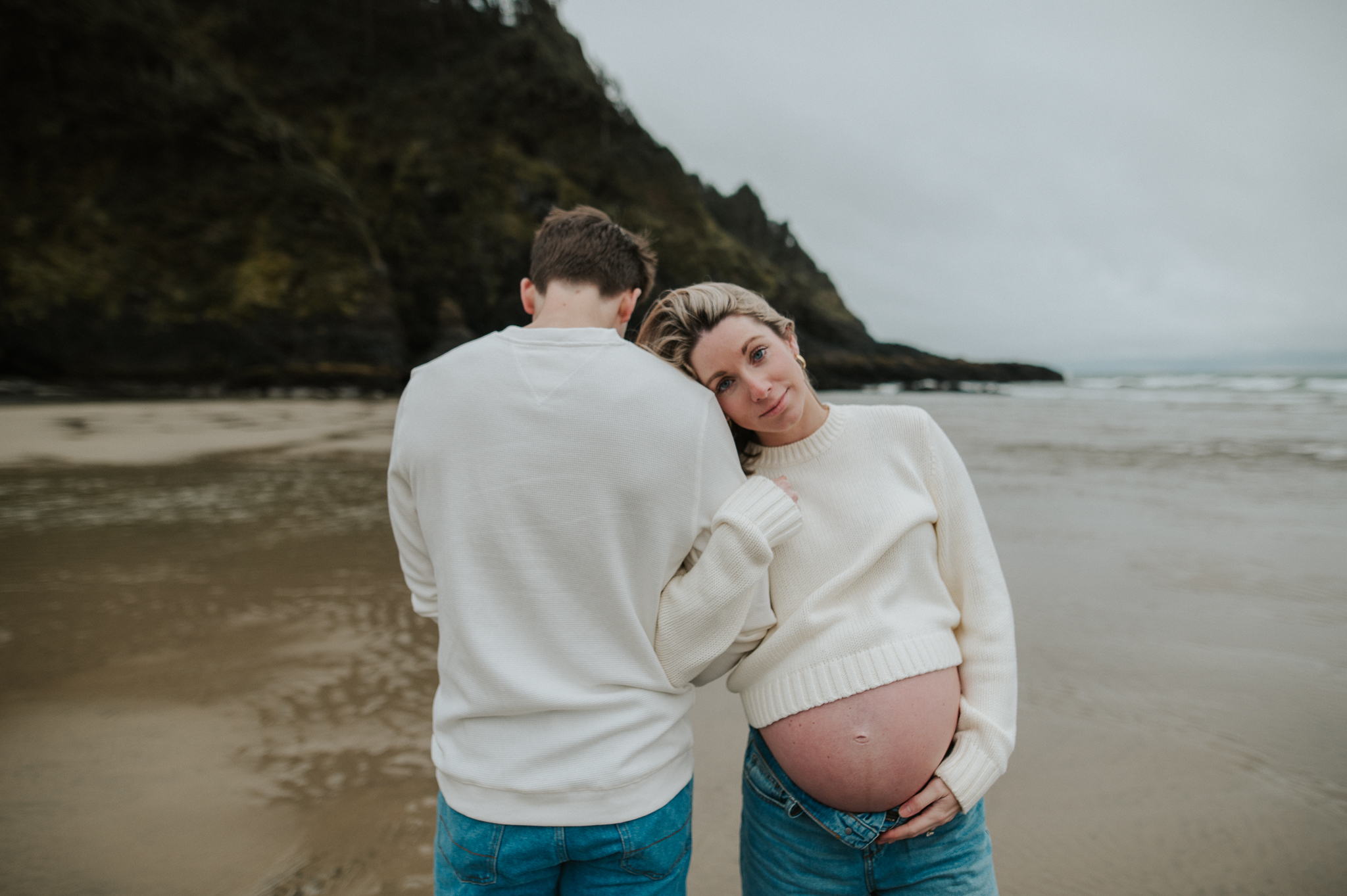 At the beginning of March I had the pleasure of photographing Anne and Tyler, who will be welcoming twins girls this spring! We rescheduled 3 different times due to the ever so changing winter Oregon coast weather – and finally nailed a not rainy day (+ a low tide, extra beautiful perk!). We had so much fun just exploring the beach, and the bond and joy between these was beautiful to capture. Scroll to see our afternoon together.