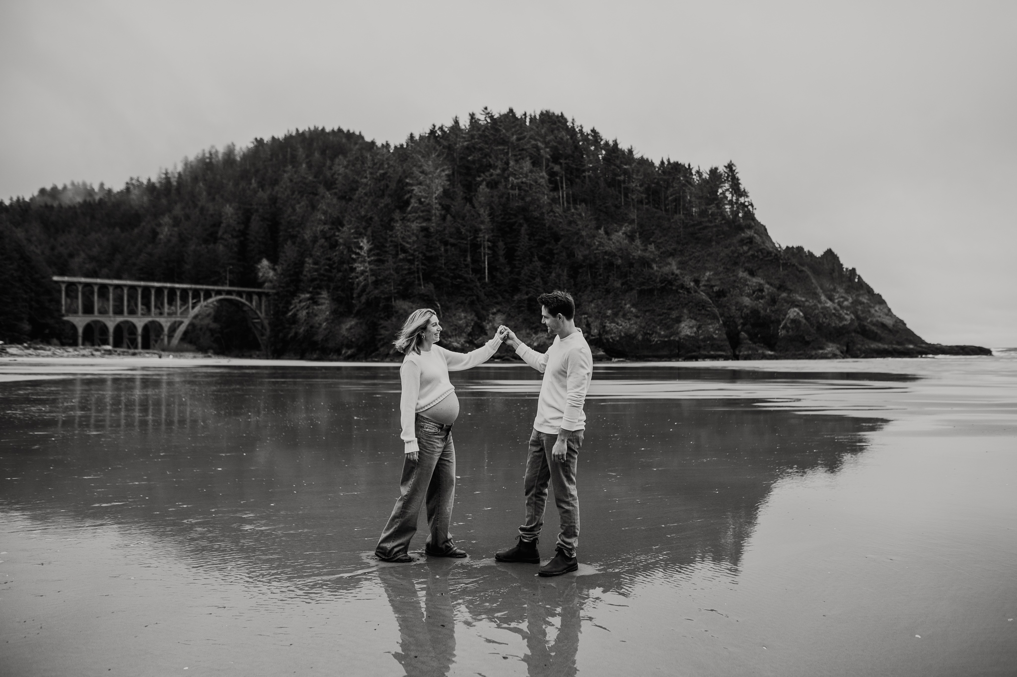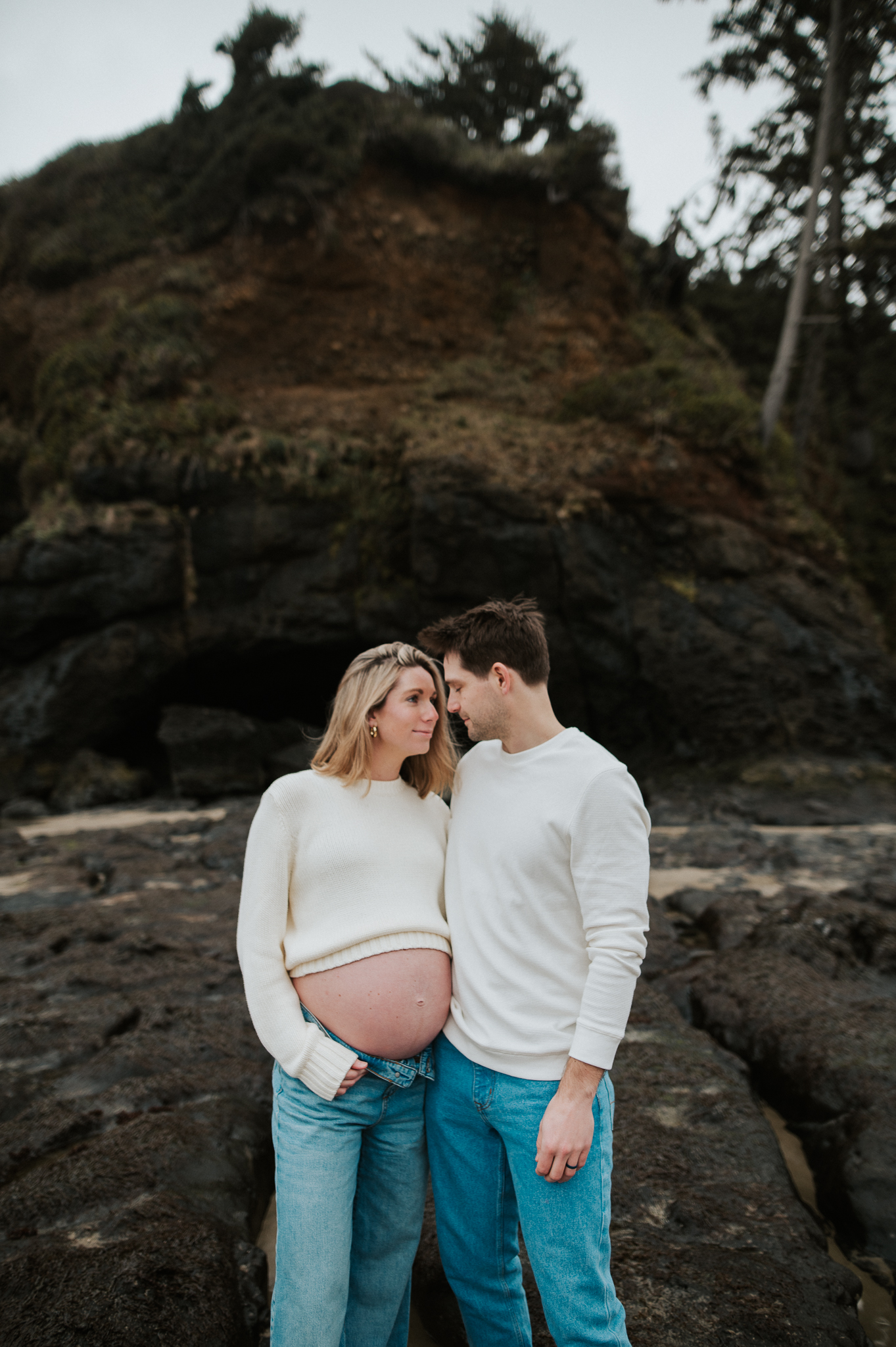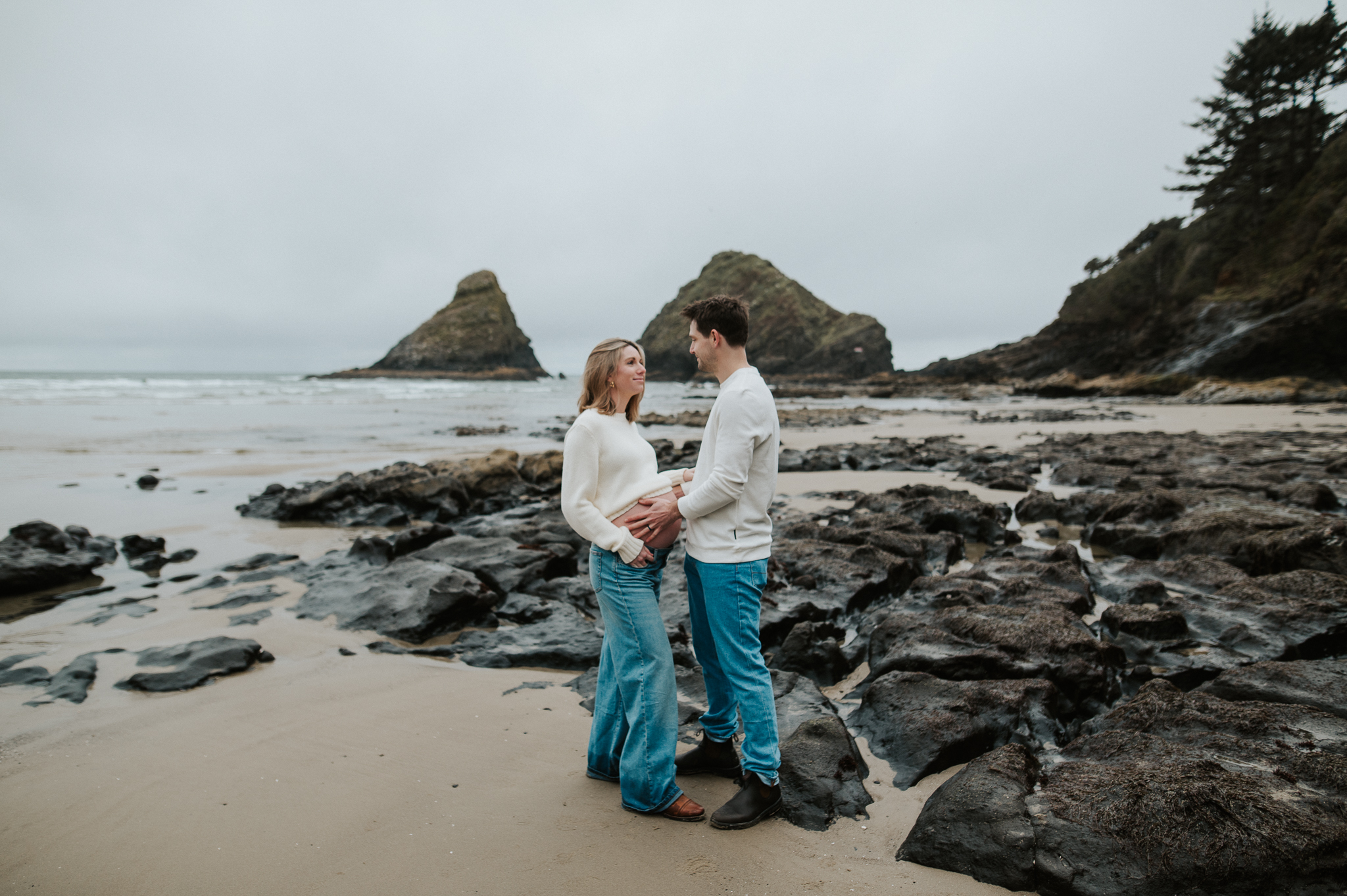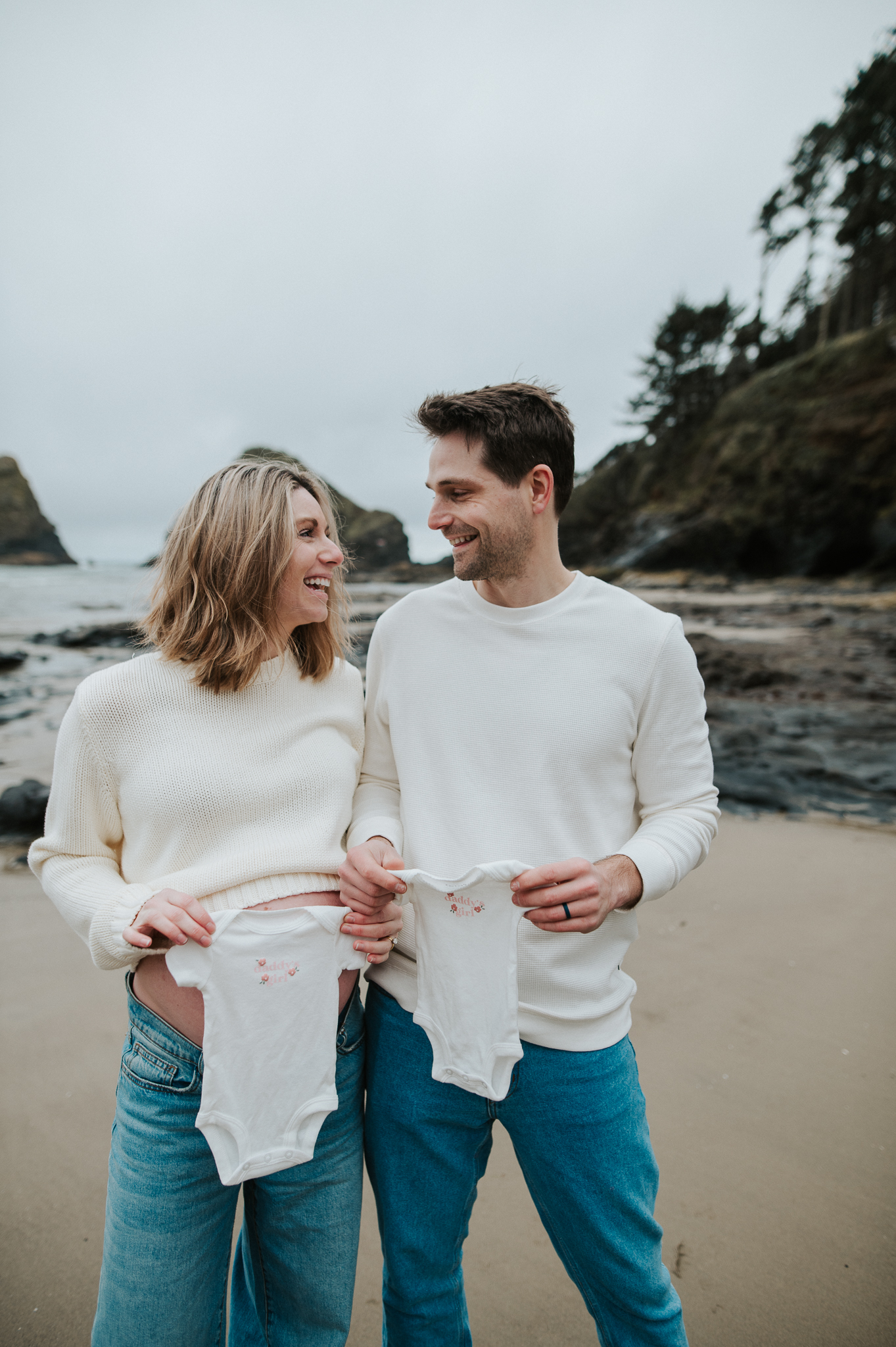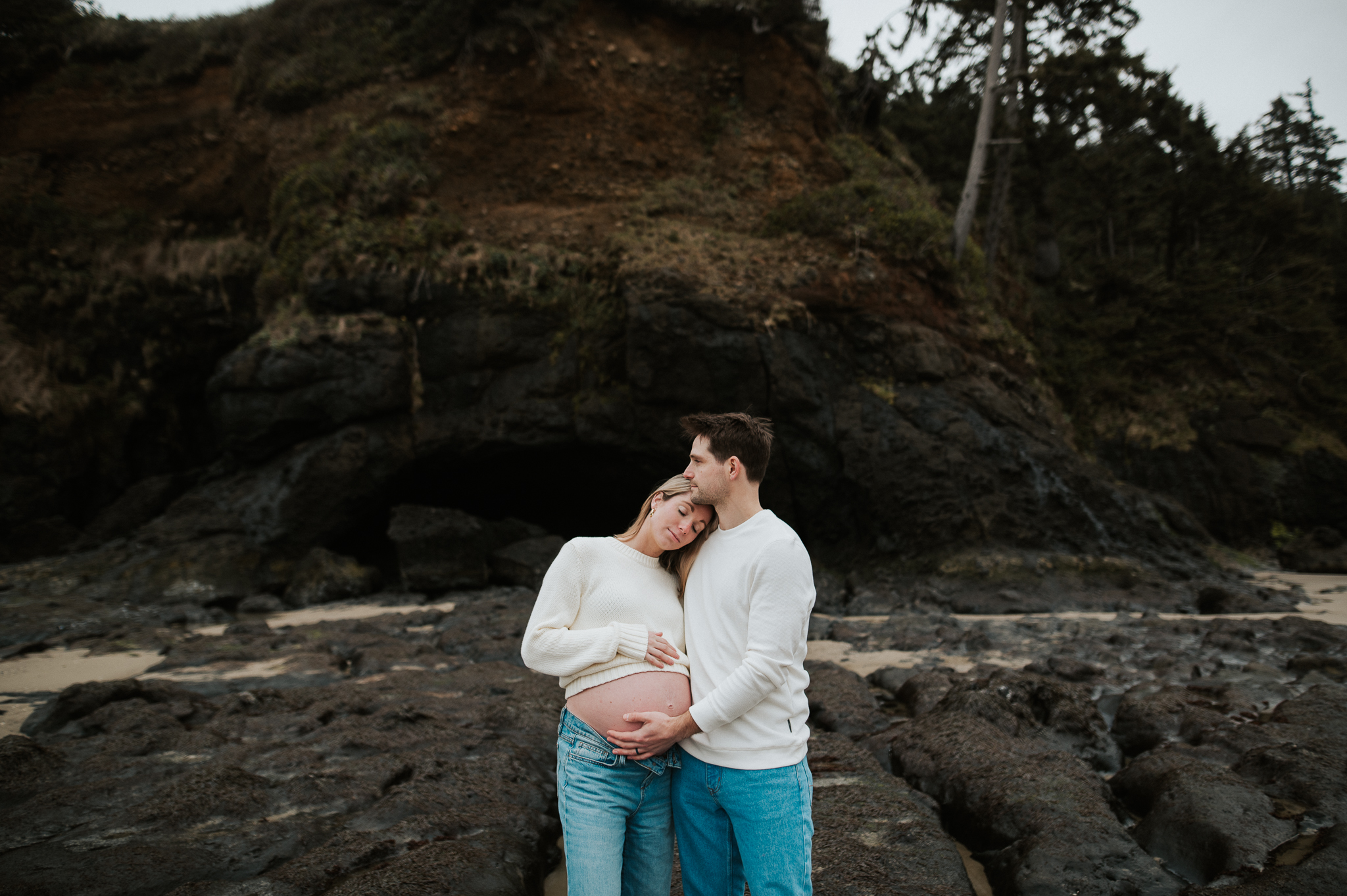 At the beginning of March I had the pleasure of photographing Anne and Tyler, who will be welcoming twins girls this spring! We rescheduled 3 different times due to the ever so changing winter Oregon coast weather – and finally nailed a not rainy day (+ a low tide, extra beautiful perk!). We had so much fun just exploring the beach, and the bond and joy between these was beautiful to capture. Scroll to see our afternoon together.