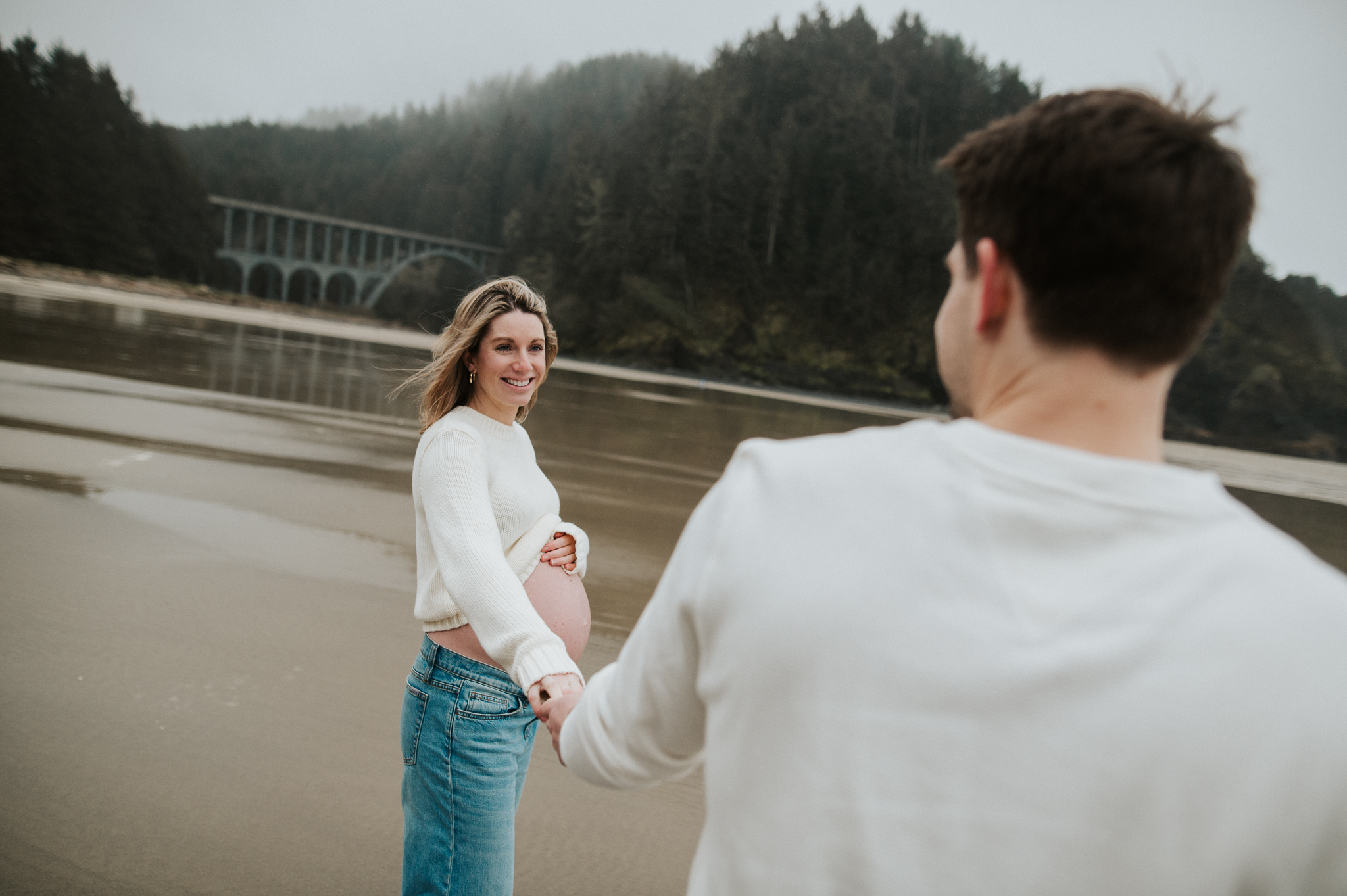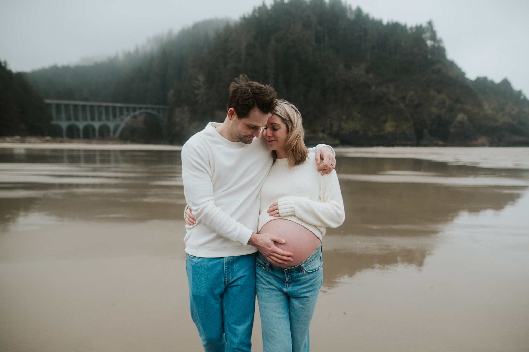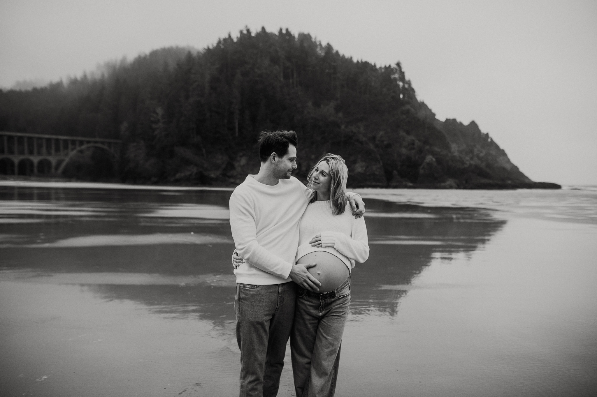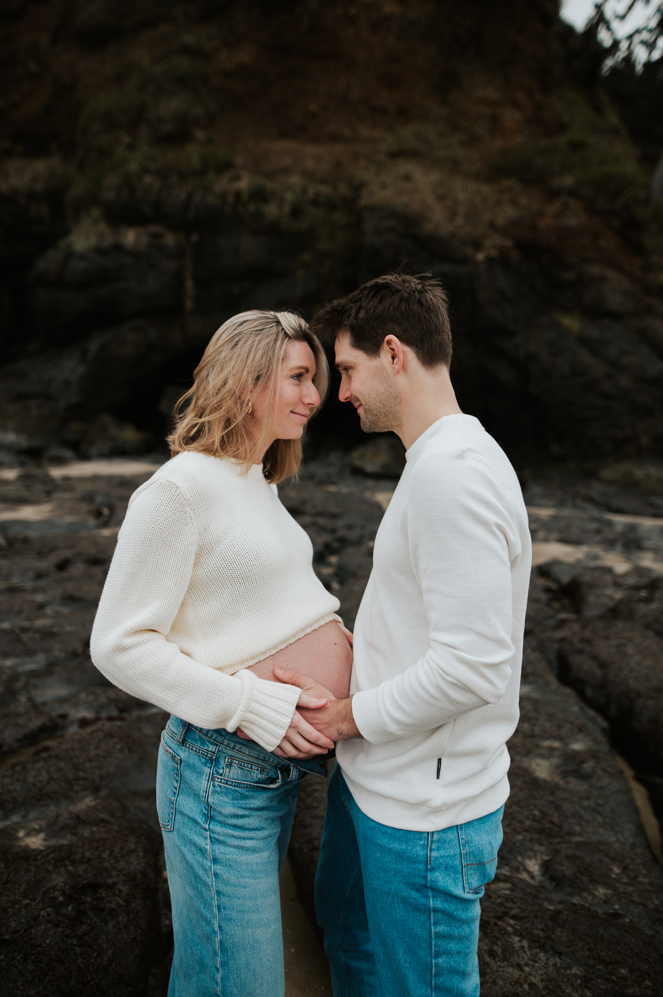 At the beginning of March I had the pleasure of photographing Anne and Tyler, who will be welcoming twins girls this spring! We rescheduled 3 different times due to the ever so changing winter Oregon coast weather – and finally nailed a not rainy day (+ a low tide, extra beautiful perk!). We had so much fun just exploring the beach, and the bond and joy between these was beautiful to capture. Scroll to see our afternoon together.