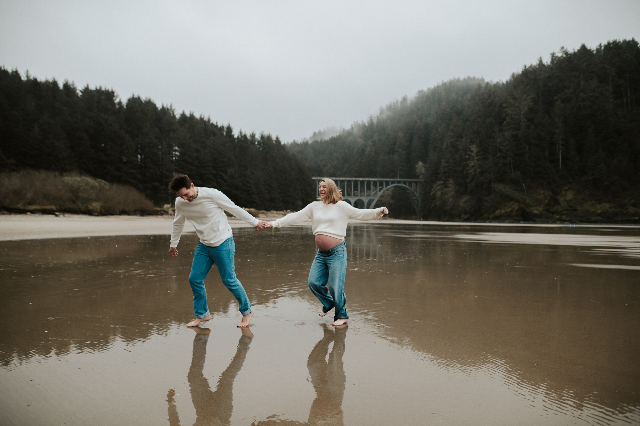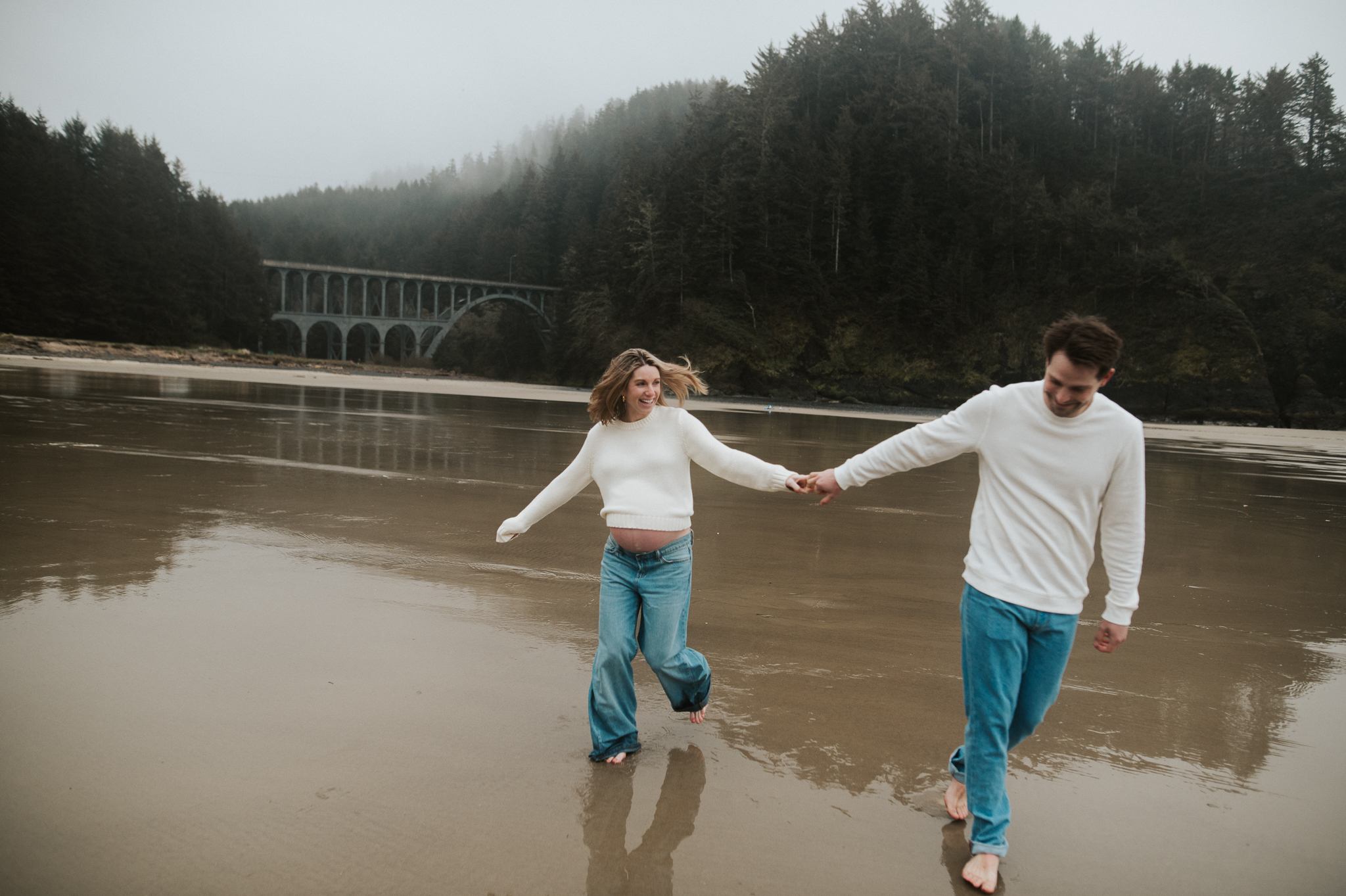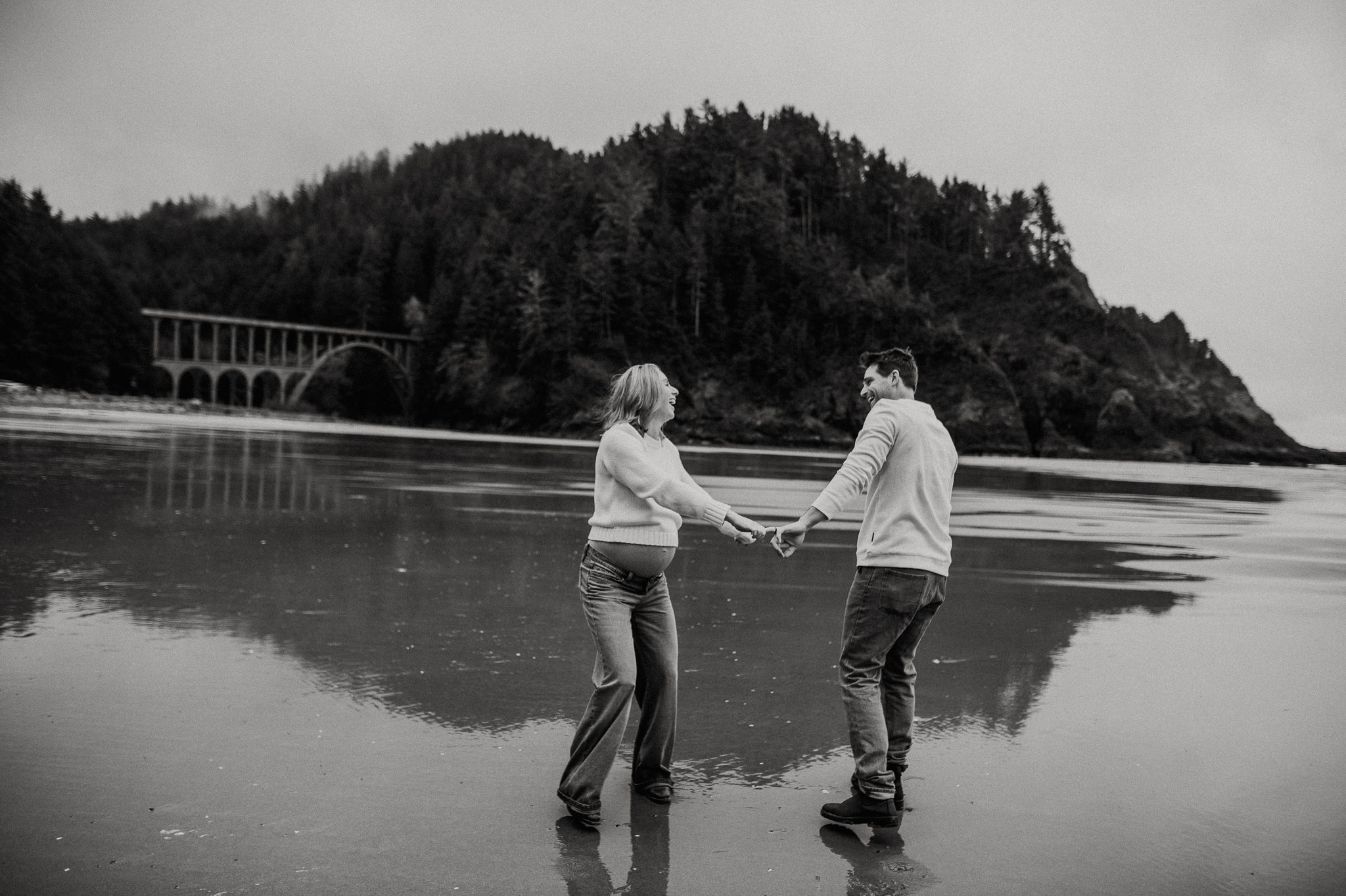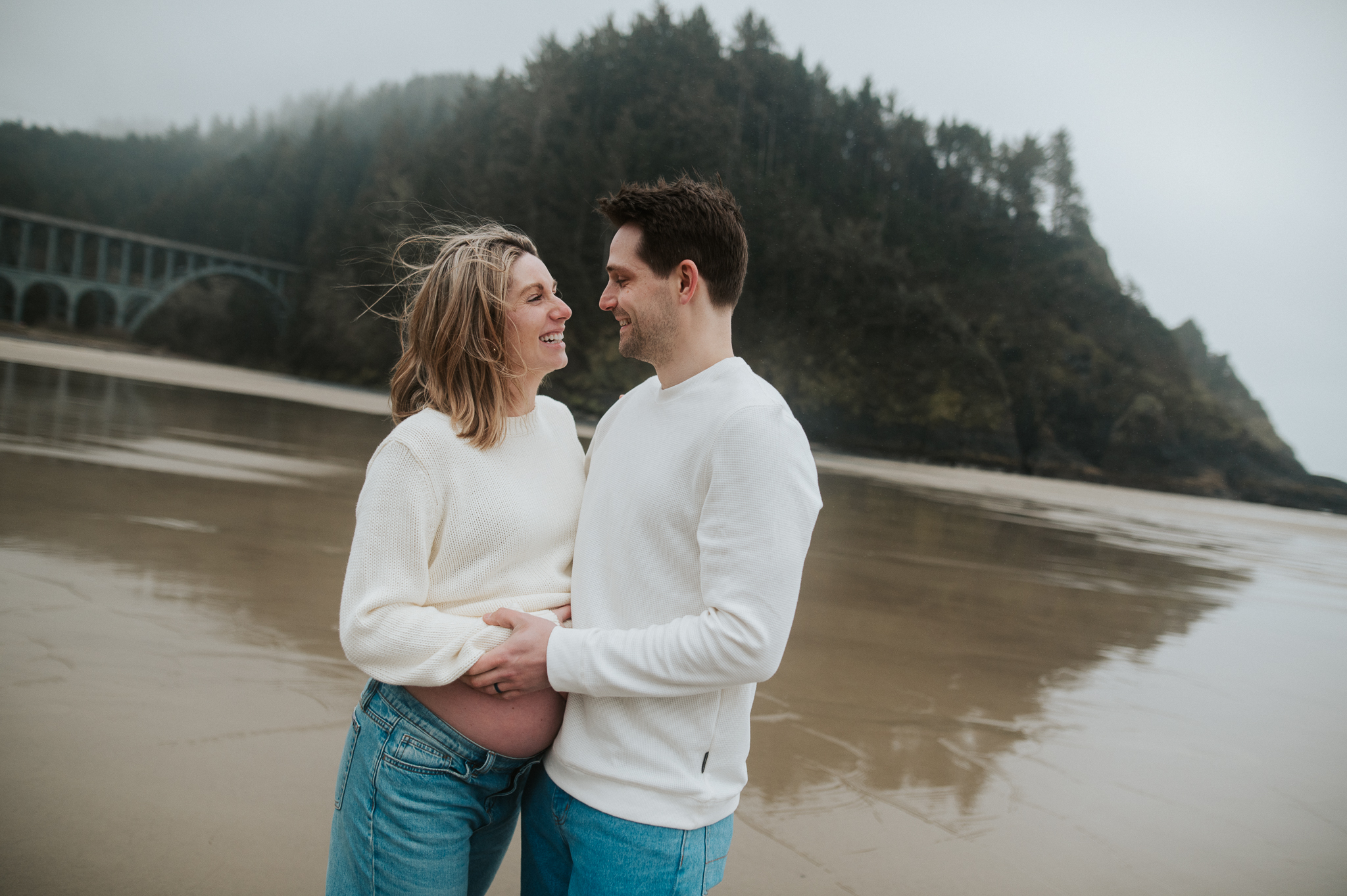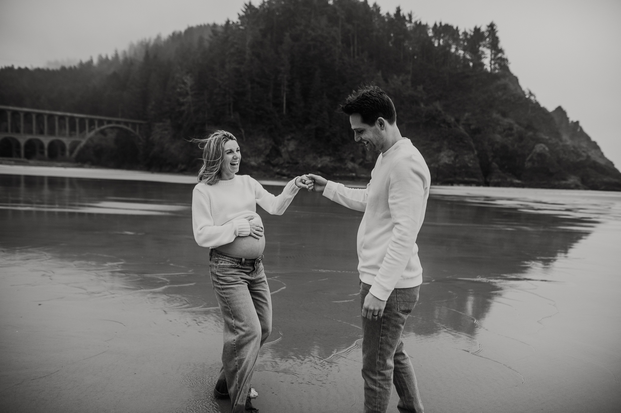 At the beginning of March I had the pleasure of photographing Anne and Tyler, who will be welcoming twins girls this spring! We rescheduled 3 different times due to the ever so changing winter Oregon coast weather – and finally nailed a not rainy day (+ a low tide, extra beautiful perk!). We had so much fun just exploring the beach, and the bond and joy between these was beautiful to capture. Scroll to see our afternoon together.